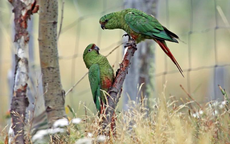 La cotorra choroy o loro choroy (Enicognathus leptorhynchus) es la última de las 10 aves exóticas de Chile que queremos compartir en esta lista. Su coloración es verde oscura y muestra manchas rojizas en abdomen, cola y rostro. Vive únicamente en Chile.