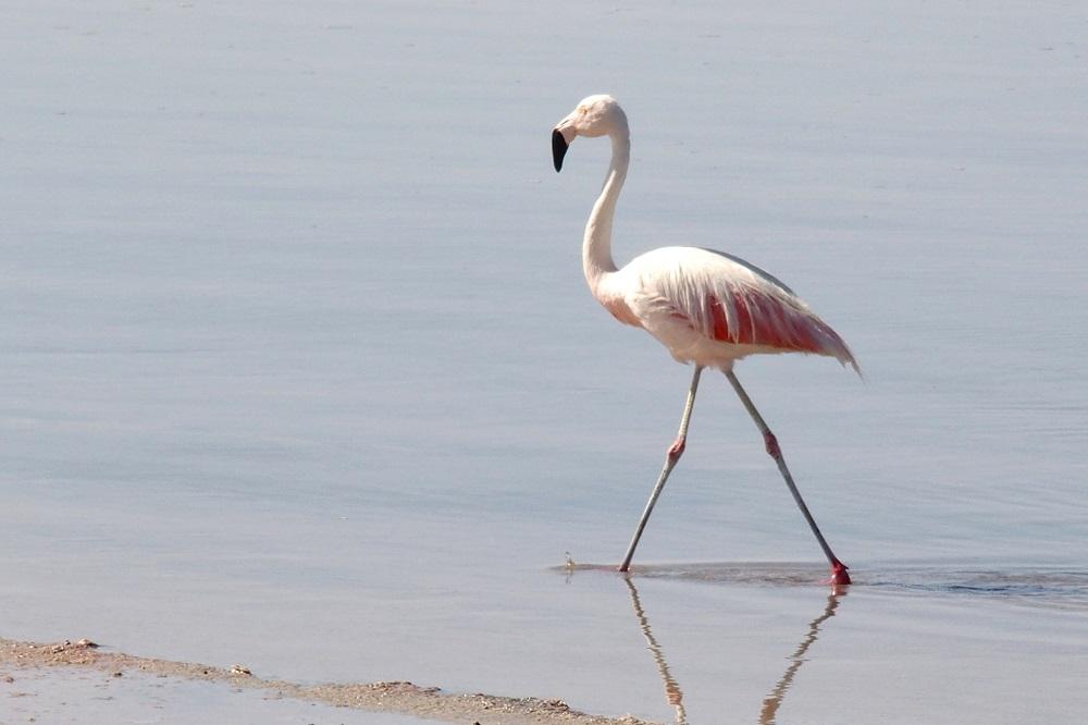 Existen seis especies de flamencos en todo el mundo, y tres de ellas se encuentra en territorio chileno, entre ellas el Phoenicopterus chilensis. Este pájaro puede llegar a medir casi metro y medio, y su plumaje rosado claro, con zonas más oscuras cerca de la cola y las rodillas, lo convierten en una ave muy hermosa de mirar. Se encuentra en zonas donde se acumulan aguas poco profundas, y se alimenta de algas marinas y pequeños crustáceos.