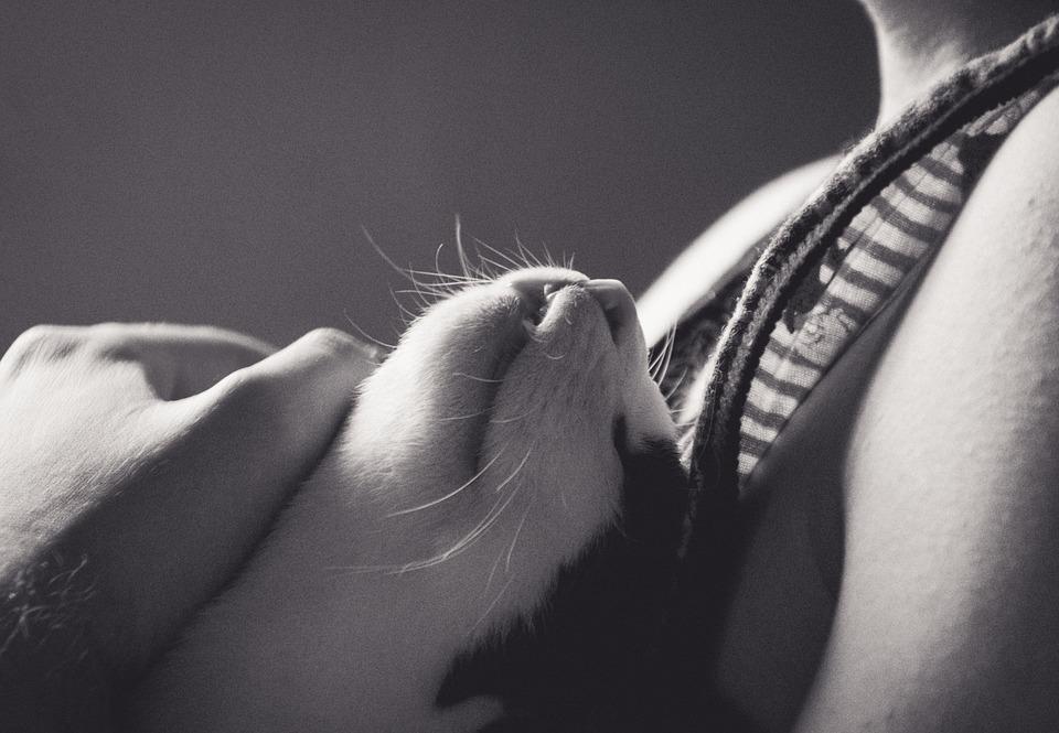 Seguimos hablando del afecto. Uno de lo lugares predilectos de los gatos es reposar sobre el pecho de su humano. No se ha encontrado una razón científica para esta fijación gatuna, sin embargo, la hipótesis es más emocional. Tu gato disfruta conectándose contigo a través de los latidos de tu corazón y del calor de tu pecho. Es el lugar donde se puede sentir más seguro y protegido.