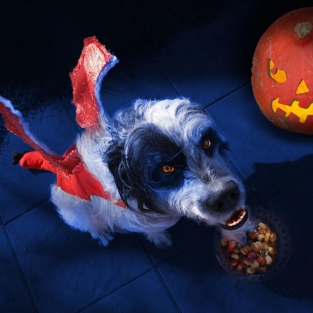 No olvides que no todos los perros quieren disfrazarse y que algunos lo pasan muy mal ante la muchedumbre y los petardos. No le fuerces a disfrazarse si no lo desea y sigue disfrutando con él de la noche más sangrienta del año.