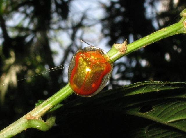 El escarabajo de la tortuga es un coleóptero cuyas alas poseen un hermoso color dorado metálico. Lo raro de este insecto es que el cuerpo es capaz de tomar un intenso color rojo frente a situaciones de estrés, ya que transporta los fluidos hacia las alas. La especie se alimenta de hojas, flores y raíces.