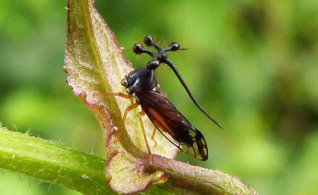 Los membrácidos son insectos poco conocidos, pero el brasileño te sorprenderá por las extrañas estructuras que penden sobre su cabeza. Mide apenas 7 milímetros y esas esferas sobre su cabeza no son ojos, es posible que su función sea la de ahuyentar a los depredadores al confundirse con hongos, pues machos y hembras cuentan con ellas.