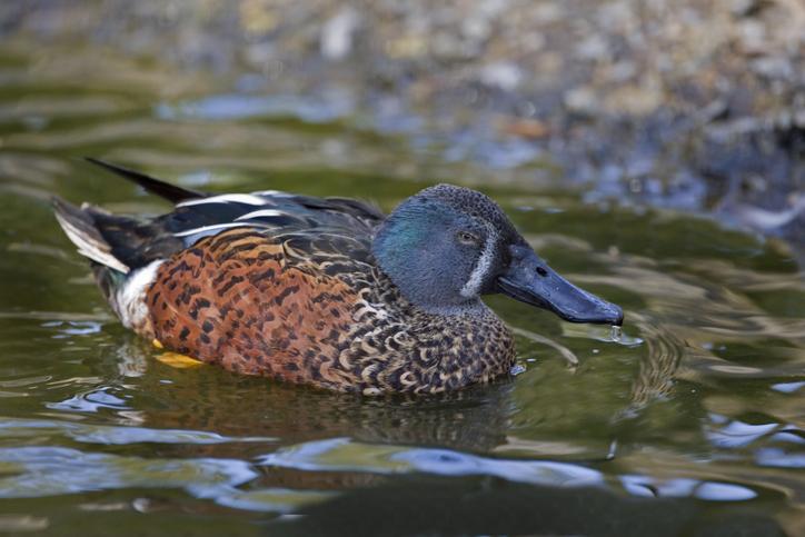 El pato cuchara australiano (Anas rhynchotis) está distribuido por toda Australia, concentrándose sus poblaciones al sureste occidental y al este de Australia y Tasmania.