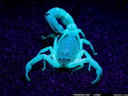 Los escorpiones no brillan en la oscuridad como tal, pero si brillan bajo la luz ultravioleta cuando son expuestos a ciertas longitudes de onda, emitiendo una fluorescencia azul-verde brillante. De hecho si la luz de la luna se encuentra muy intensa podrían brillar con ella.