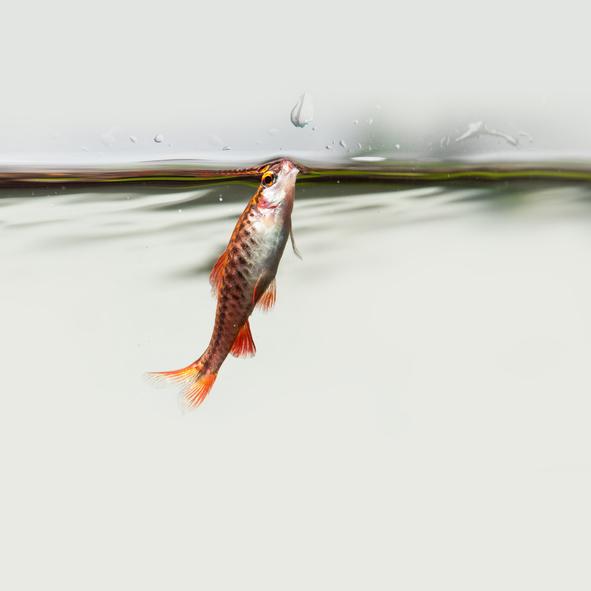 Cuando los peces se acercan a la superficie de la pecera para boquear, con una respiración agitada pero acompañada de movimientos aletargados, debes revisar la baja concentración de oxígeno en el agua.