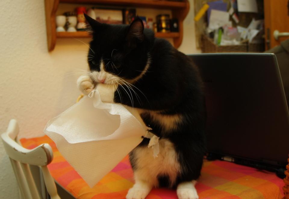 - En casa deberemos retirar los objetos sospechosos de causar la alergia del entorno de nuestro gato: si la alergia remite y queremos saber cuál es el desencadenante de ésta, iremos introduciendo de uno en uno otra vez los objetos retirados para observar los síntomas en nuestro gato hasta hallar el causante del problema.