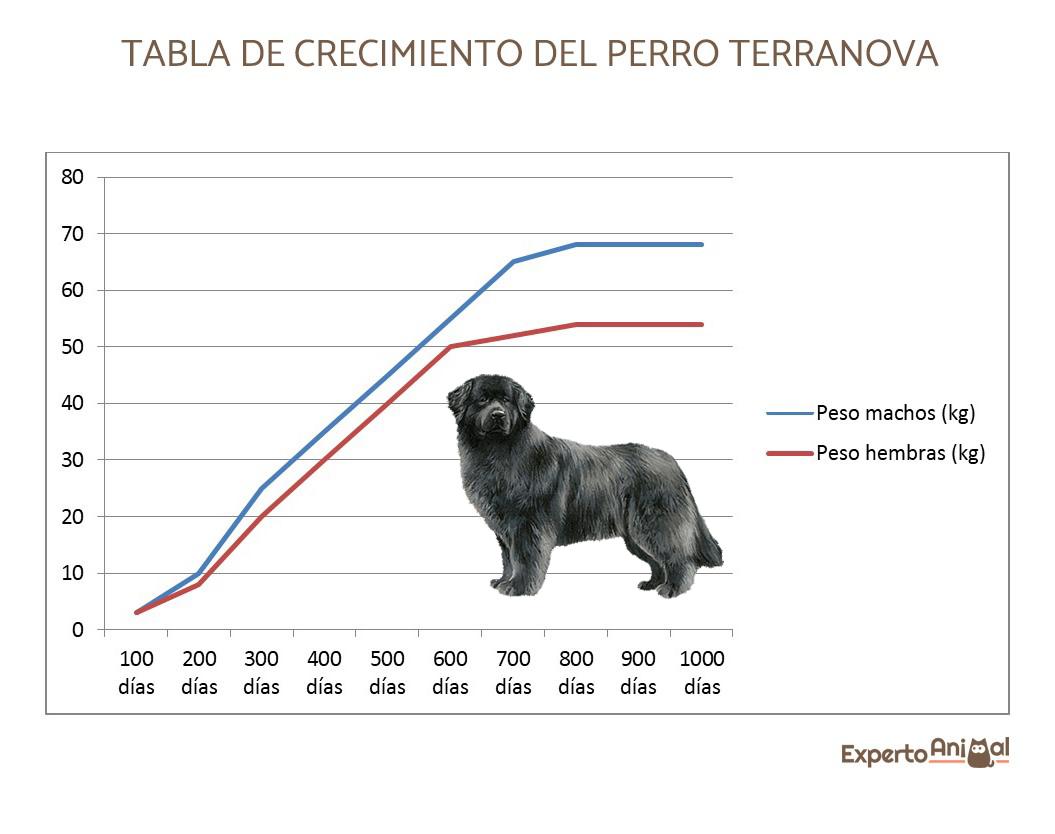 - Macho terranova adulto de 68 kg: 2.165 kilocalorías diarias (aprox.)