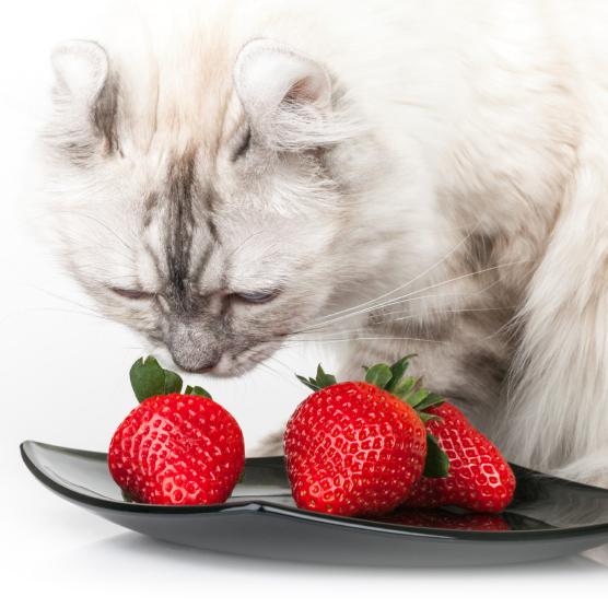 Las fresas también son aptas para el consumo del gato. En pequeñas dosis las manzanas, peras y melocotones también son aptas para el felino.