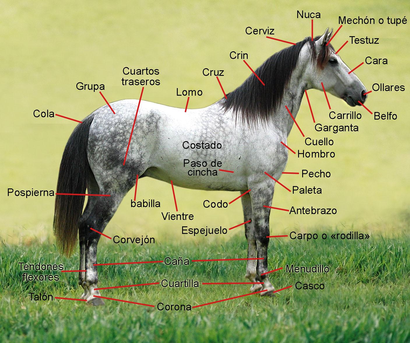La anatomía del caballo o morfología externa se divide en cabeza, cuello, tronco y extremidades.