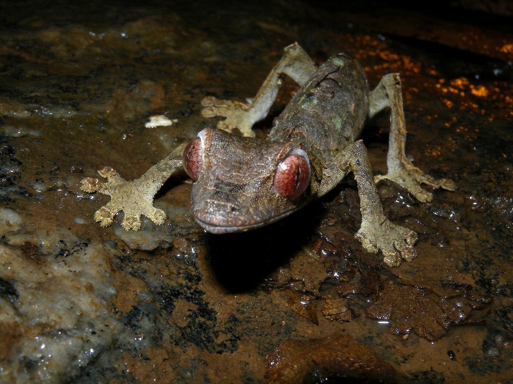 El geco cola de hoja satánico (Uroplatus phantasticus) es una especie endémica de Madagascar. Tiene hábitos nocturnos y se alimenta de pequeños insectos. Es uno de los animales con ojos grandes más curiosos, pues carece de párpados, lo que resalta aún más el tamaño de sus globos oculares. Además, sus ojos son 350 veces más sensibles al color que el aparato ocular humano, por lo que perciben las imágenes de forma más nítida y definida.