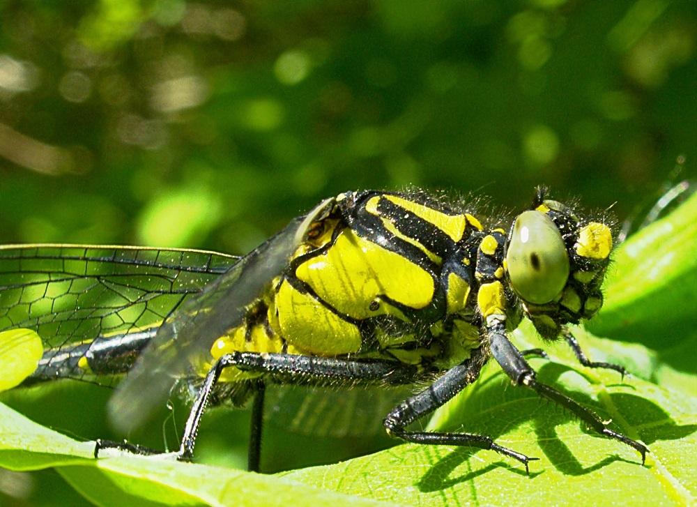 La libélula común (Gomphus vulgatissimus) es un insecto de alas transparentes que habita en España e Italia, principalmente en las zonas de alta montaña.Se alimenta de otros insectos voladores que intercepta en la superficie del agua. Su principal característica son los enormes ojos que cubren casi toda su cabeza y están compuestos por más de 30.000 unidades fotorreceptores llamadas omatidios, los cuales le permiten tener una excelente visión sensible al movimiento.
