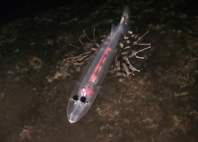 El pez duende de hocico marrón (Dolichopteryx longipes) es un animal de ojos grandes. Mide alrededor de 20 centímetros, no posee espinas y se distribuye en las profundidades del océano Atlántico, el Pacífico y el mar de la China. Los grandes ojos de este pez destacan en su cuerpo transparente y delgado.