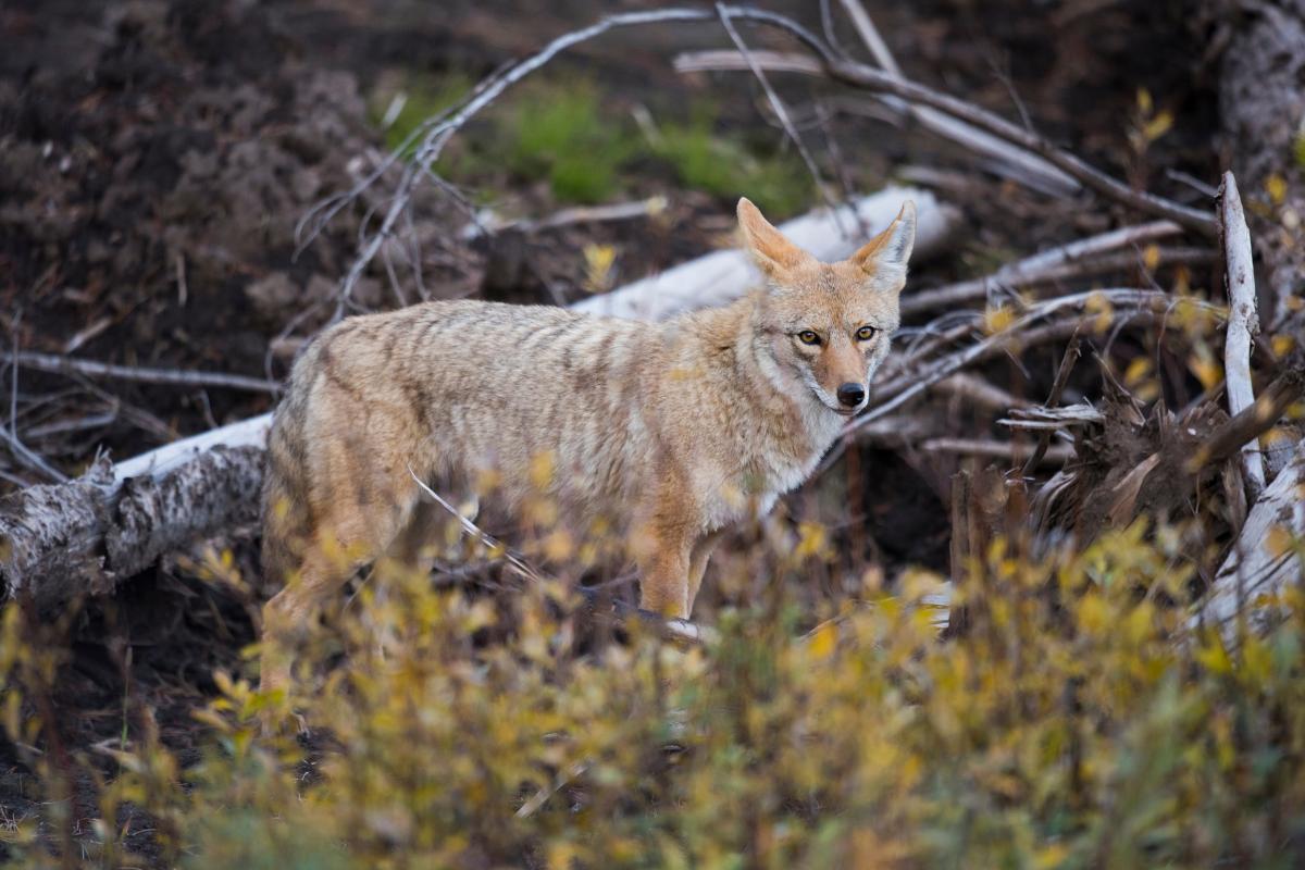 El coyote es un cánido nativo de América del Norte, conocido por su adaptabilidad y su habilidad para sobrevivir en diversos hábitats. Con una apariencia similar a un lobo pequeño, el coyote mide entre 60 y 90 cm de altura y pesa entre 8 y 20 kg. Su pelaje es de color gris, marrón o amarillento, con un patrón de colores que le proporciona camuflaje en su entorno natural. Tiene un cuerpo delgado, orejas erectas y un hocico alargado, su cola es peluda y generalmente se curva sobre su espalda cuando está en movimiento.