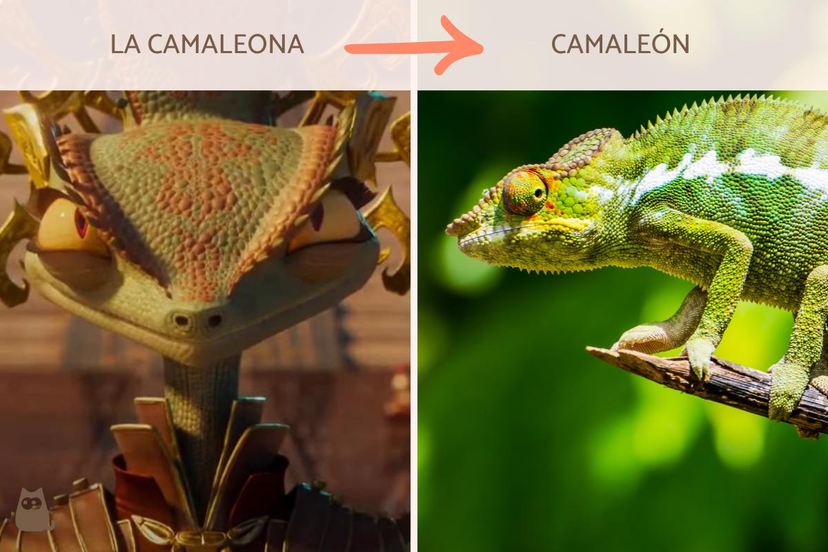 En la última entrega, aparece una villana que es una camaleona, una hechicera que tiene la capacidad de transformarse en otros animales. El animal representado es un camaleón, que pertenece a la familia Chamaeleonidae. Hay diversas especies y varias tienen la particularidad de cambiar su coloración, rasgo en el que seguramente se inspiraron para hacer que el personaje se transforme.