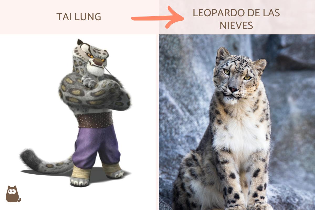 El animal que representa Tai en "Kung Fu Panda" es un leopardo de las nieves (Panthera uncia), un felino nativo de varios países asiáticos, entre ellos China. Es de color blanquecino o grisáceo con manchas negras. Puede medir hasta 1,5 metros, con una larga cola de aproximadamente 1 metro y pesar hasta 75 kg, siendo los machos un poco más grandes que las hembras. Su estado de conservación actual es "vulnerable".