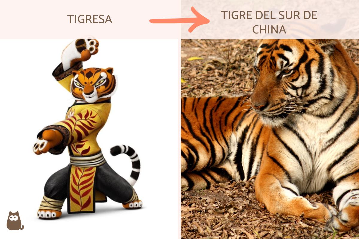 Tigresa es una representación del tigre (Panthera tigris), una especie nativa de Asia que está fuertemente afectada y clasificada como "en peligro de extinción". Se reporta que Tigresa pertenece a la subespecie Panthera tigris amoyensis, conocida como tigre del sur de China. No obstante, la taxonomía de las subespecies del tigre ha resultado muy controvertida y una de las propuestas aceptadas, aunque aún en revisión, es que esa subespecie, junto con otras, se agrupan con el tigre de Bengala (Panthera tigris tigris). En cualquiera de los casos, Tigresa, uno de los animales de "Kung Fu Panda", representa a una tigresa hembra que existe realmente.