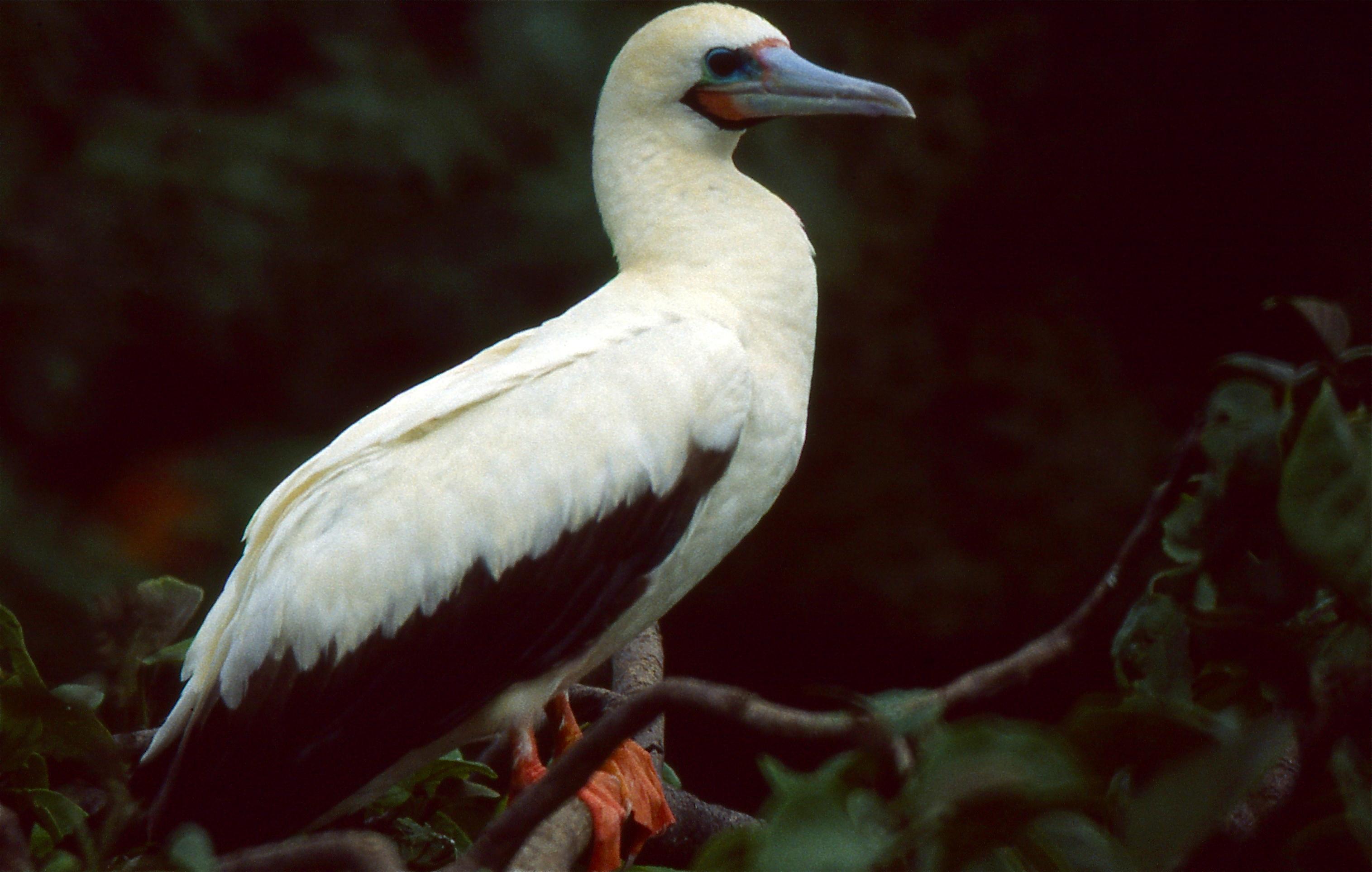 El patirrojo (Sula sula) es una ave que se incluye entre la fauna de las islas Galápagos, aunque su distribución mundial es amplia: puede encontrarse en múltiples países de América Latina, Asia e incluso Europa. Es una especie completamente marina que se alimenta de peces. Cuando no se encuentra planeando los cielos en busca de comida, descansa en zonas isleñas con abundante vegetación. Debido a que su tendencia poblacional es decreciente, se considera una especie de preocupación menor[4].
