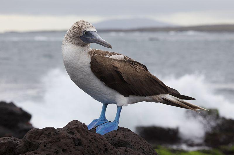 El piquero patiazul (Sula nebouxii) es una especie de ave que se encuentra en las islas Galápagos, pero también habita las zonas costeras de Colombia, Honduras, Nicaragua, Perú, Chile y Panamá. Se trata de otro de los animales de las islas Galápagos estudiados por Darwin en su paso por las islas. Por lo general, estas aves marinas se alimentan de sardinas y anchoas, siendo además depredadas por los delfines. Prefieren criar en zonas como riscos y acantilados con escasa vegetación. Se considera una especie de preocupación menor[7].