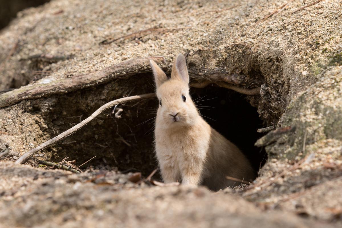 - Similar en apariencia al conejo europeo, aunque suele ser un poco más pequeño y de color más oscuro.
