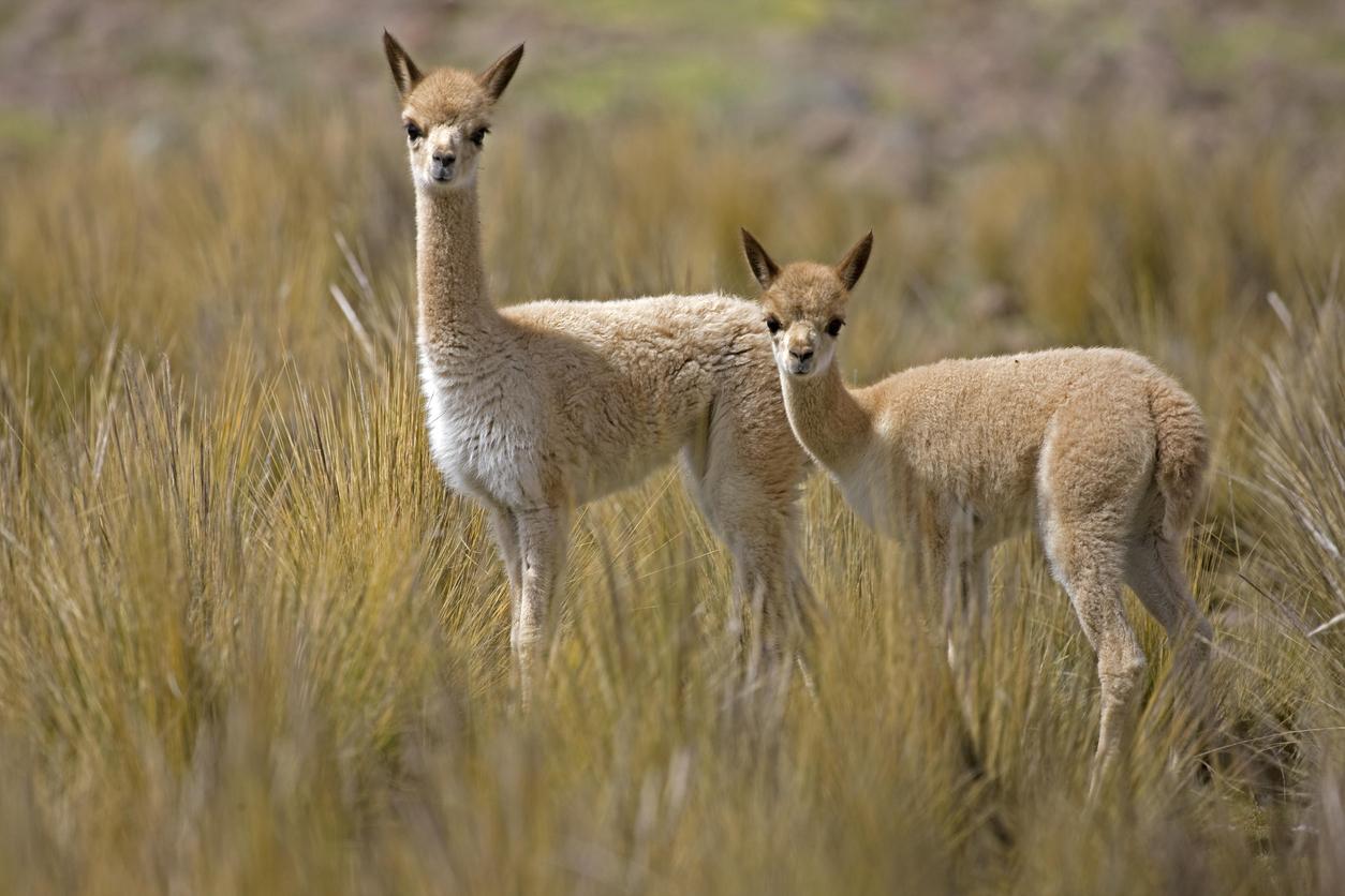 La vicuña pertenece a la familia de los camélidos y es de hecho el miembro más pequeño del grupo. Tiene un cuerpo esbelto con patas y cuello largos. Mide alrededor de 1,5 metros y pesa 50 kg en promedio.