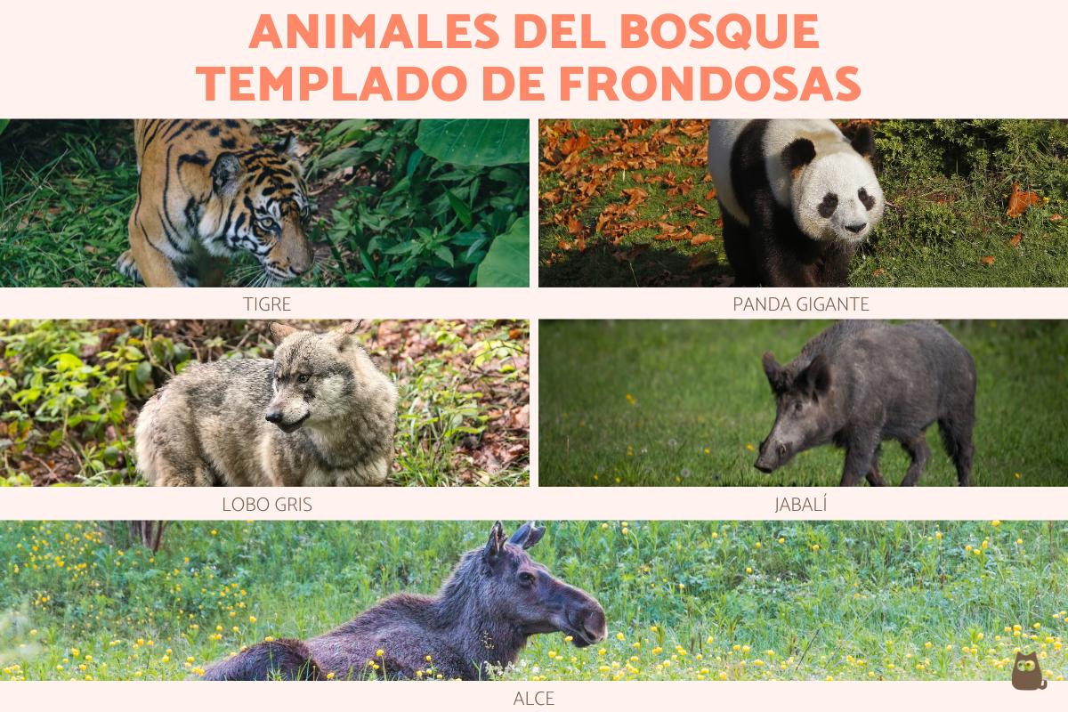La diversidad animal del bosque templado de frondosas, depende de la región y las particularidades del bioma. Algunos ejemplos de la fauna del bosque templado de frondosas son: