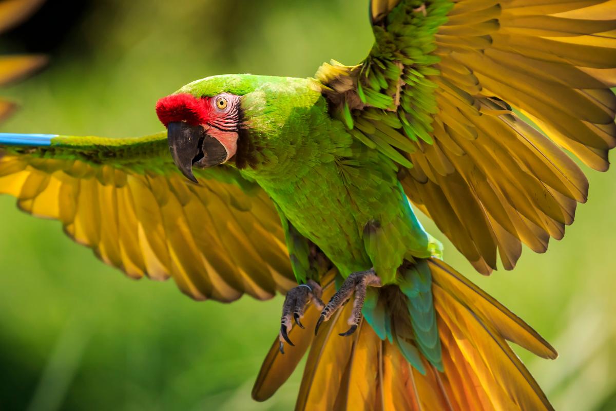 Finalizamos la lista de los animales en mayor peligro de extinción en Colombia con el este espectacular guacamayo, de plumaje verde brillante con rostro rojizo. Habita los bosques húmedos del Chocó biogeográfico y la Amazonia. Se encuentra “en peligro crítico de extinción” debido a la deforestación y la captura para el comercio ilegal de aves.