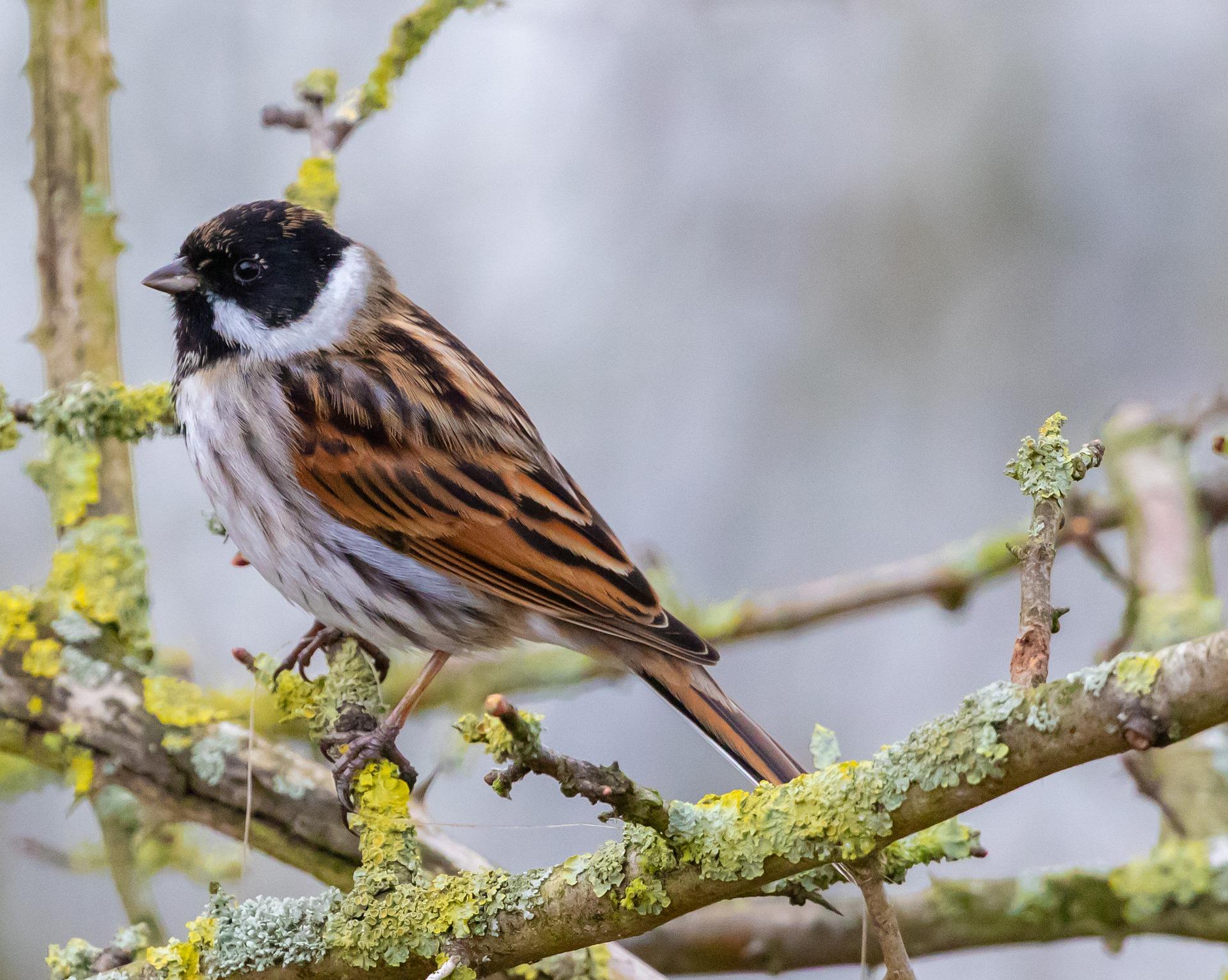 Esta ave pertenece a la familia Emberizidae y ocupa humedales y otros cuerpos de agua de casi toda Europa y Asia con presencia de vegetación palustre. Alcanza cerca de 16 cm de longitud y posee un plumaje con tonos pardos y grises en la parte ventral, llamando la atención el macho durante la época reproductiva, ya que su plumaje nupcial se vuelve negro en la cabeza y parte del pecho, además de mostrar un collar blanco no presente en la hembra.