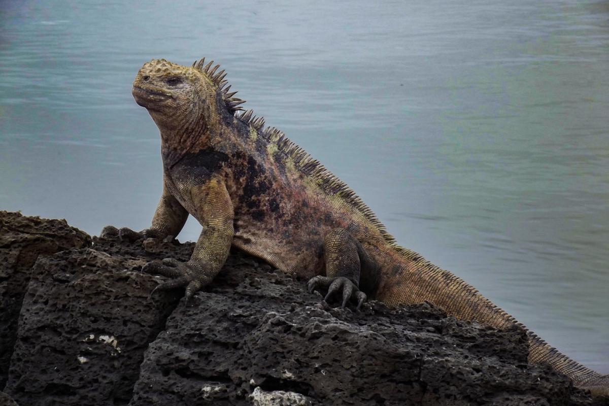 Esta especie de iguana es única ya que es otra especie endémica de Ecuador, específicamente del área insular, en el archipiélago de Galápagos. Las dimensiones van desde los 60 cm hasta unos 1,3 metros, siendo los machos más grandes que las hembras. La coloración es gris oscuro a negro y está perfectamente adaptada para permanecer hasta 45 minutos bajo el agua. Está clasificada en la categoría de vulnerable.