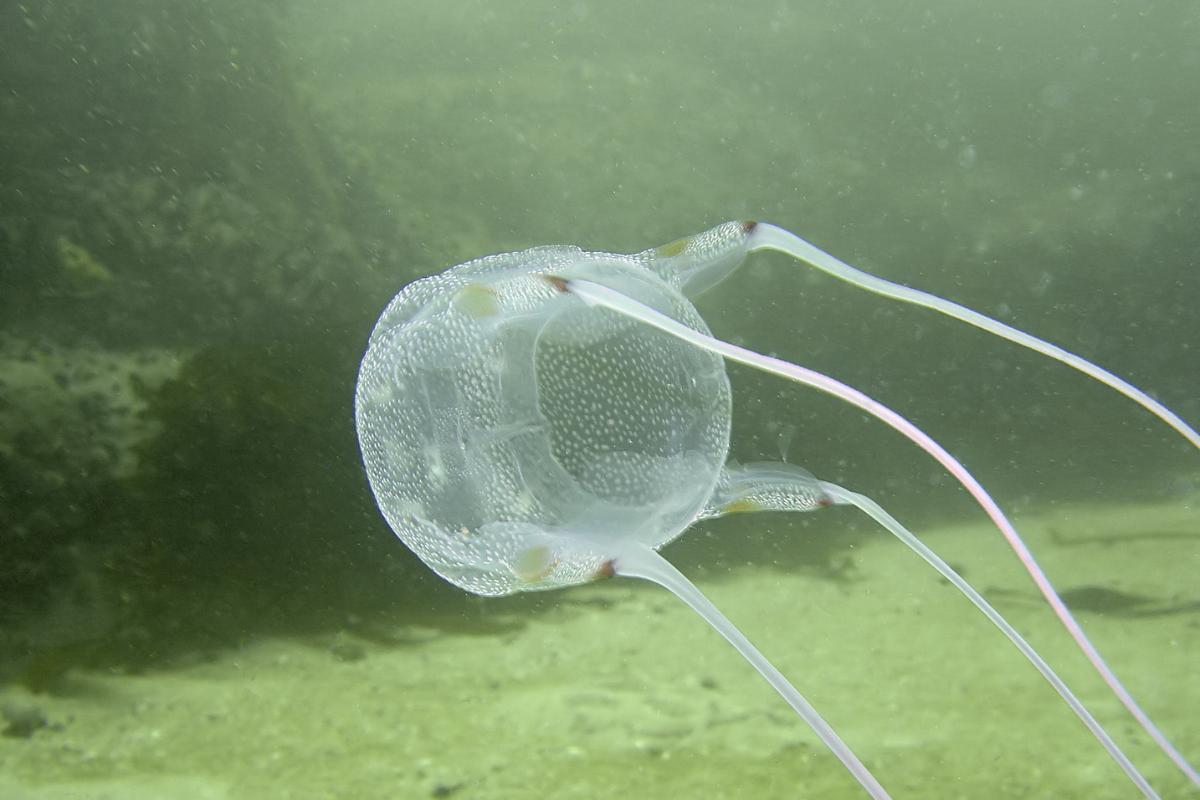 La medusa de caja provoca una reacción cutánea dolorosa con necrosis y ulceración, seguida de un paro cardíaco fatal en solo 3 minutos. De hecho, se recomienda usar un traje de neopreno completo para evitar el contacto con estos animales peligrosos de mar, que son pequeñas (menos de 1 cm) pero veloces (2 metros por segundo) y habitan en aguas del norte de Australia.