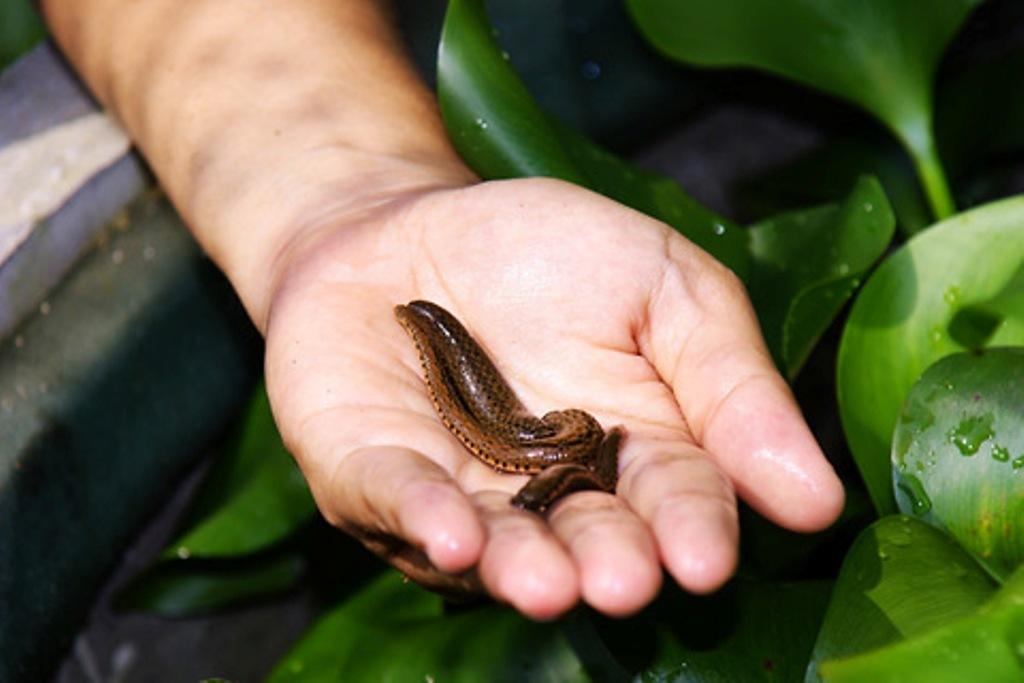 Las aguas de ríos, lagos y pantanos también albergan un sinfín de especies extrañas, entre ellas, la rana oscura de Mississippi, un anfibio anuro que se encuentra en peligro crítico de extinción. Una curiosidad sobre este animal raro es que las hembras son más grandes que los machos, que suelen medir entre 56 y 105 centímetros. Cabe destacar que, las mayores amenazas para este animal son dos enfermedades fúngicas.