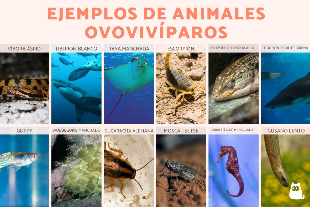 Como hemos visto, el desarrollo de la reproducción ovovivípara es altamente beneficiosa para animales que viven en hábitats donde sus huevos estarían expuestos a factores que anularían su desarrollo. Veamos seguidamente, algunos ejemplos de animales ovovivíparos: