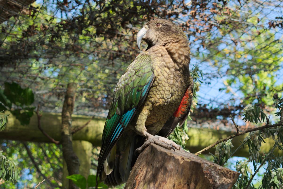 De tamaño mediano, el siguiente de los animales peligrosos en Nueva Zelanda seguro que te sorprende. Hablamos del kea, loro de montaña o loro carnicero, una de las aves nativas en Nueva Zelanda y que puede llegar a tener una envergadura alar de hasta 10 cm. Son traviesos y muy inteligentes. De hecho, se les conoce como "los payasos de los Alpes".