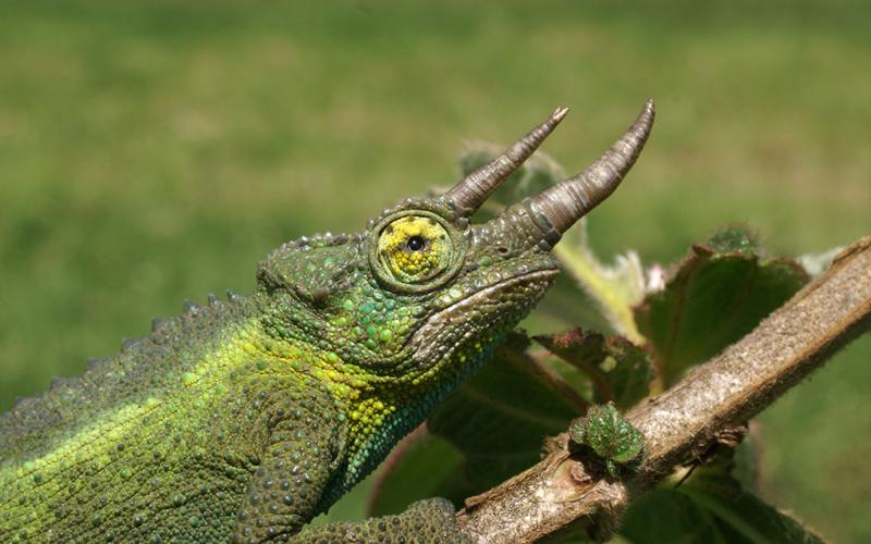 El trioceros de Jackson (Trioceros jacksonii) es uno de los camaleones que es capaz de realizar mayor número de cambios de color, pues adopta entre 10 y 15 tonos distintos. La especie es originaria de Kenia y Tanzania, donde vive en áreas de entre 1.500 y 3.200 metros de altura.