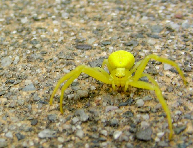 Se trata de un arácnido que se encuentra entre los animales que cambian de color para esconderse. La araña cangrejo amarilla (Misumena vatia) mide entre 4 y 10 mm y habita en América del Norte.