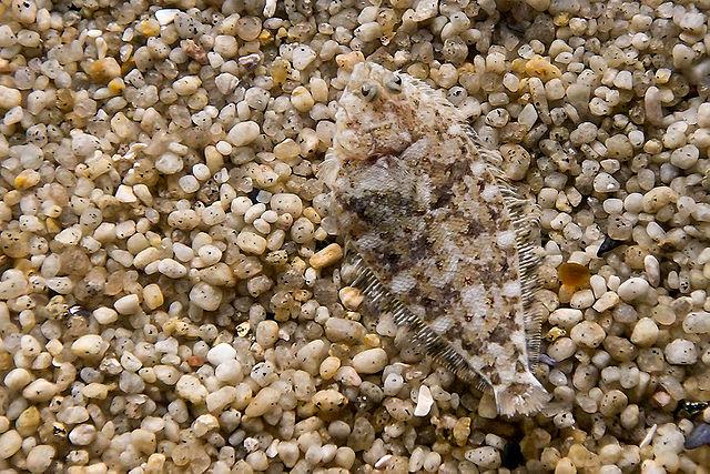 El lenguado común (Solea solea) es otro pez capaz de modificar el color de su cuerpo. Habita las aguas de la zona atlántica y mediterránea, donde se encuentra a un máximo de 200 metros de profundidad.
