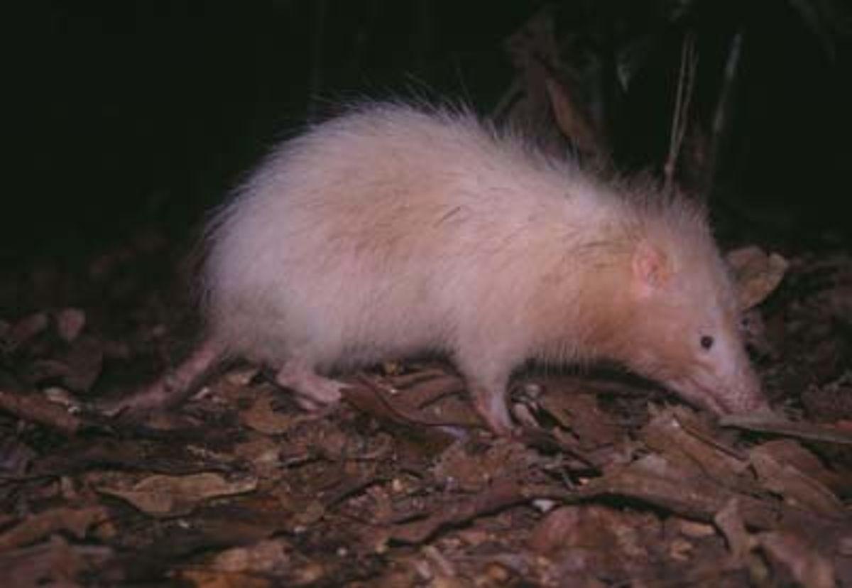 Otro ejemplo de animales que comen insectos en la rata lunar (Echinosorex gymnura) es un roedor que mide hasta 460 milímetros y posee un pelaje blanco o negro. La especie presenta un dimorfismo sexual marcado, ya que las hembras son más grandes que los machos. La dieta de la rata lunar es diversa, se alimenta tanto de insectos como de fruta y vertebrados acuáticos, como peces.