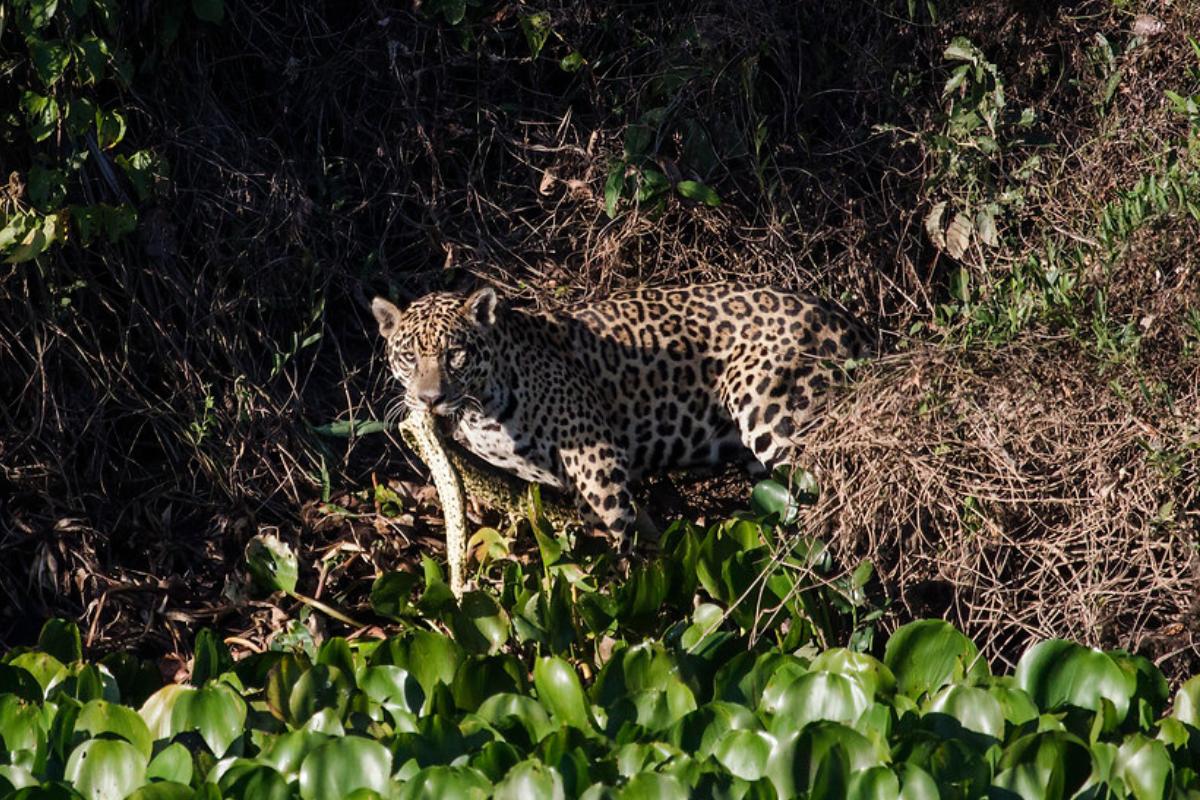 Los felinos son en general importantes depredadores y suelen ser cazadores exitosos en los ecosistemas que habitan. Dentro de estos tenemos al jaguar (Panthera onca), el cual se distribuye desde Norte hasta Sur América. Este imponente felino, que pesa en promedio unos 100 kg, se alimenta de una gran variedad de presas, de hecho, se han identificado más de 85 tipos de animales que puede cazar, dentro de las que se encuentran las serpientes.