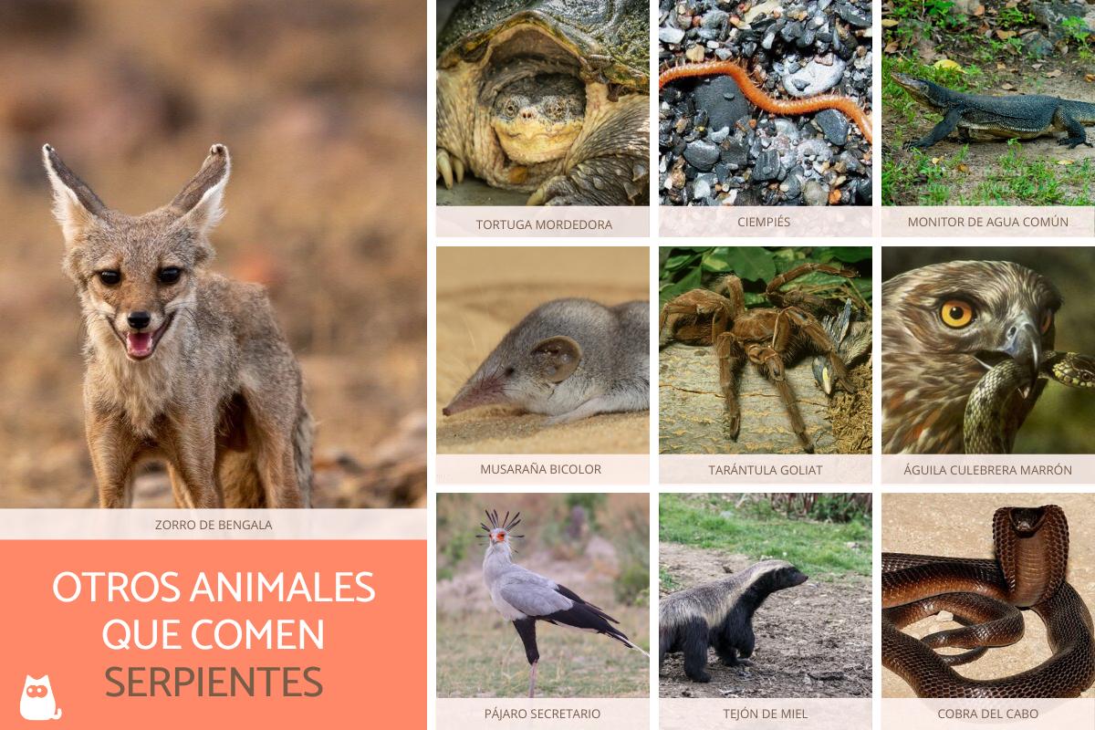Además de los anteriormente mencionados, existen muchos otros animales que se alimentan de serpientes, a continuación, conoce algunos de ellos: