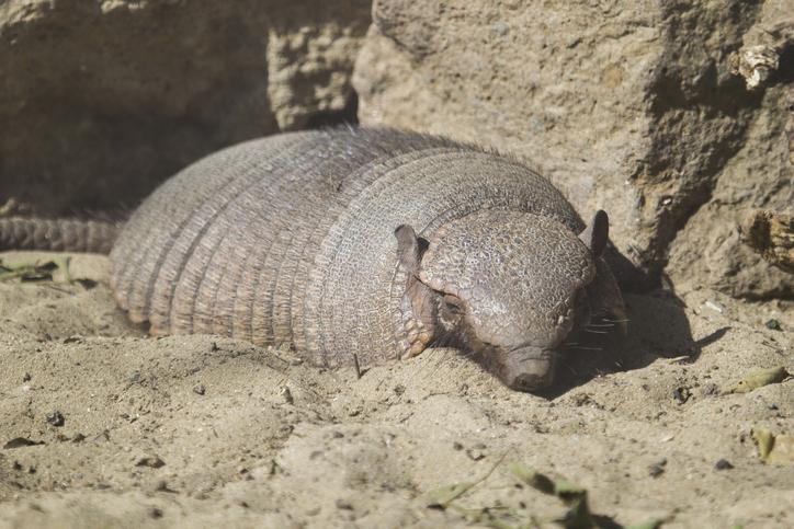 El armadillo (familia Dasypodidae) es un mamífero que se caracteriza por su caparazóny su aspecto similar al de una rata prehistórica. Posee un hocico puntiagudo y ojos pequeños, además, su piel tiene tonalidades rosa, marrón, gris o amarillenta. Vive en climas cálidos y húmedos, como zonas boscosas o pastizales.