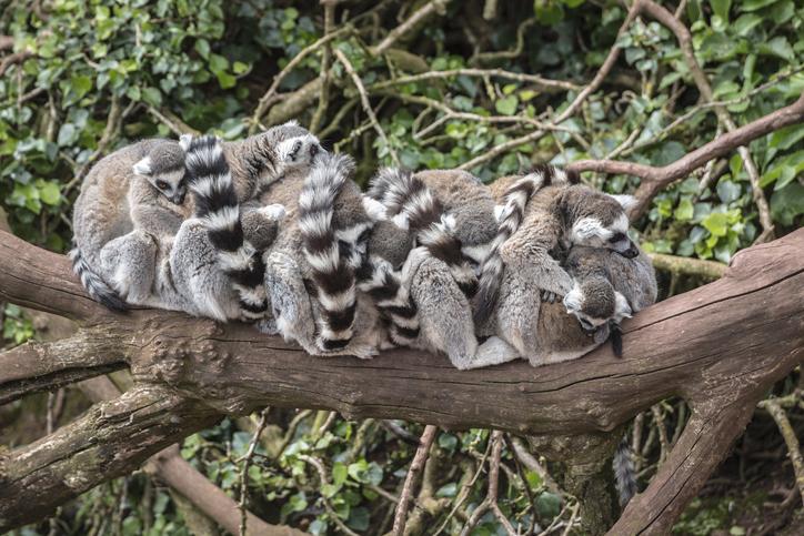 El lémur es otro de los animales dormilones, pues duerme hasta 16 horas al día, dedicando el resto del tiempo a alimentarse, relacionarse con sus congéneres, etc.