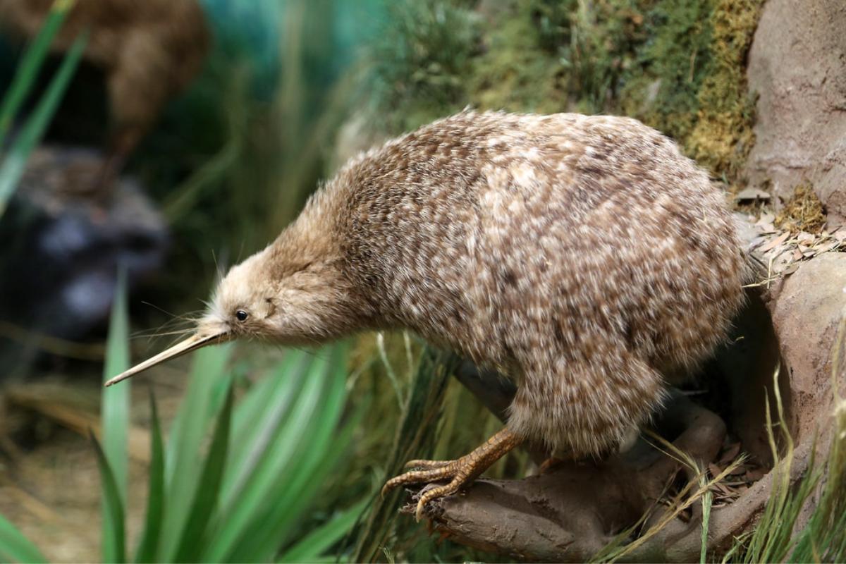 El kiwi (Apteryx) es el símbolo nacional de Nueva Zelanda y, de hecho, existen 5 especies distintas de kiwi. Es un ave no voladora que vive en agujeros cavados por ella y que tiene unas alas muy pequeñas, ocultas bajo la gran cantidad de plumas que adornan su cuerpo.