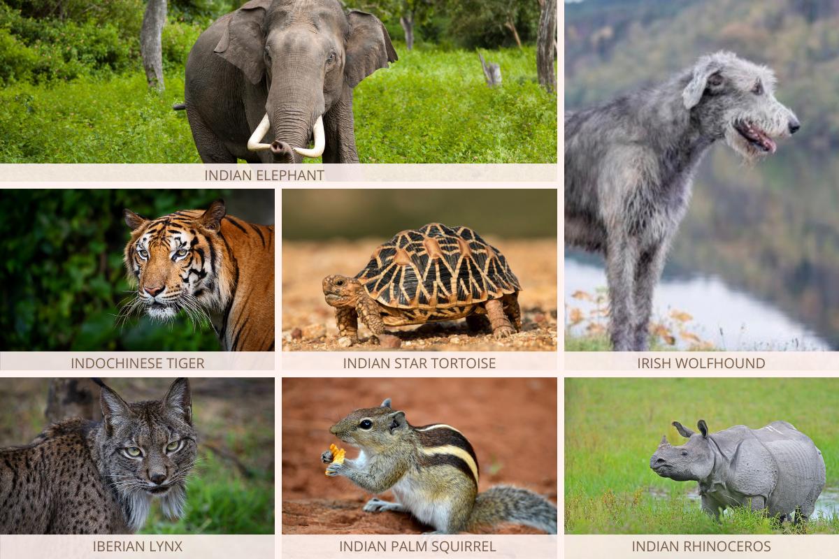 Bajo el nombre de indian elephant encontramos a una subespecie del elefante asiático, el elefante indio. Posee un tamaño imponente y trompa larga y musculosa. Este elefante mide hasta 4 metros y se encuentra en peligro de extinción debido a la destrucción de su hábitat y la caza indiscriminada.