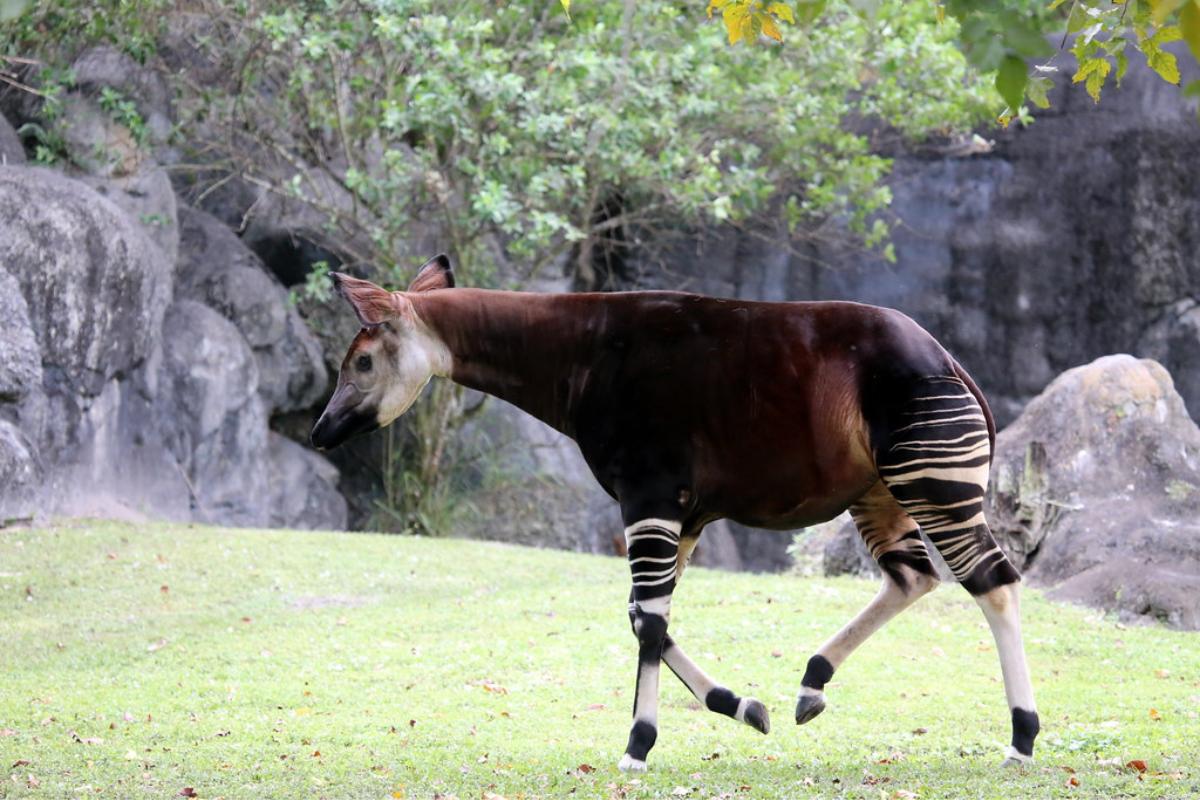 Con un físico un tanto peculiar, el okapi es un mamífero artiodáctilo, es decir, un mamífero ungulado de dedos pares. Por sus similitudes, este animal que empieza por O es el pariente vivo de la jirafa más cercano. Aparentemente se parecen mucho, aunque el tamaño del okapi es evidentemente menor. Además, el pelaje de las patas y los glúteos recuerda a una cebra, ya que es de rayas blancas y negras.