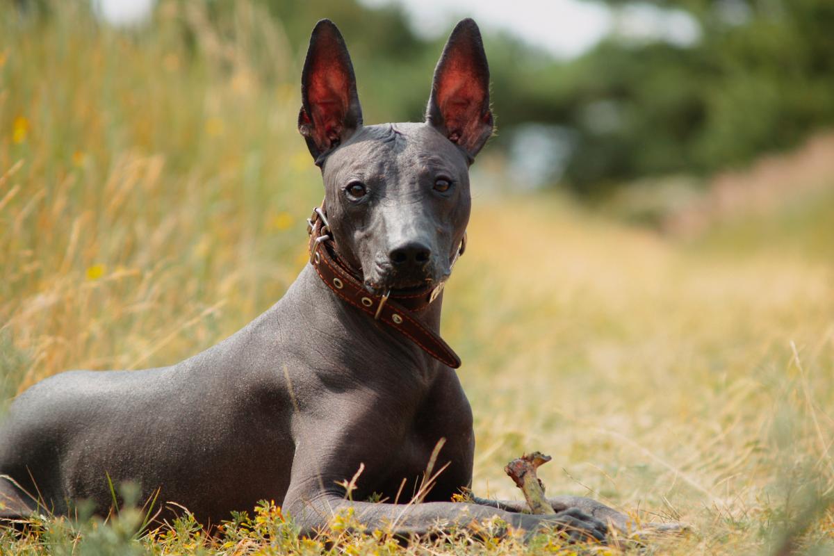 El xoloitzcuintle es una antigua raza de perro similar a los conocidos como “perro pila”, originaria de México. Algunas culturas lo asocian a la muerte y es venerada por los pueblos mesoamericanos prehispánicos como guía espiritual hacia el más allá y usado en rituales funerarios. Se caracteriza por su piel desnuda (aunque existen variedades con pelo, especialmente sobre la cabeza), cuerpo atlético y orejas grandes.