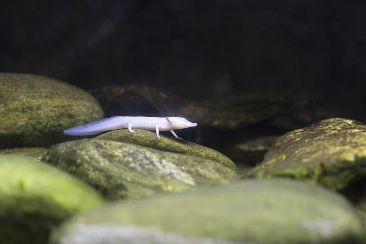 La salamandra ciega de Texas es un anfibio de alrededor de 12 centímetros de longitud, originario de las aguas de cuevas del estado de Texas, principalmente del condado de Hays. Su falta de ojos y pigmentación en la piel se debe a que este animal vive en la más estricta oscuridad subterránea, sin salir a la superficie en ningún momento. Aunque su población es muy reducida, su piel, además de ser especialmente sensible, es una aliada para evitar ser capturada, así como para encontrar alimento, principalmente camarones y caracoles.