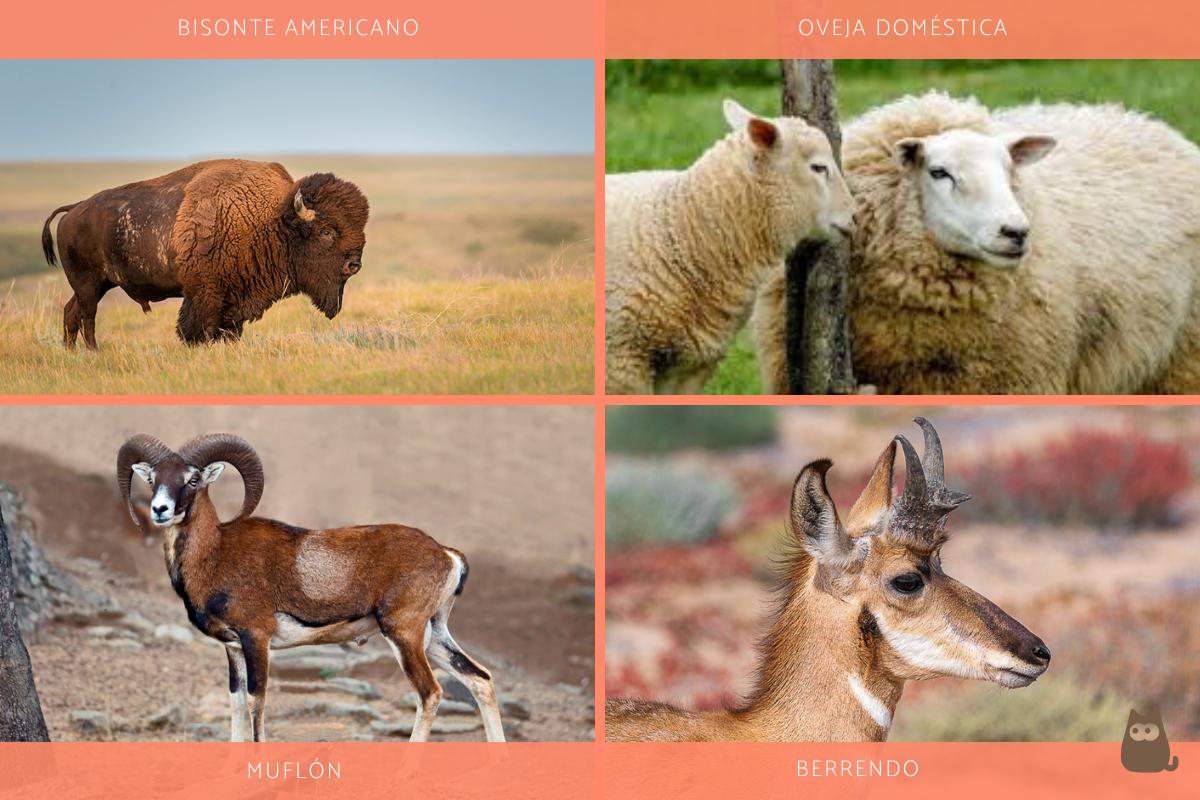 - Familia Bovidae: incluye a los animales domesticados como el ganado, búfalos, bisontes, antílopes y a los caprinos.