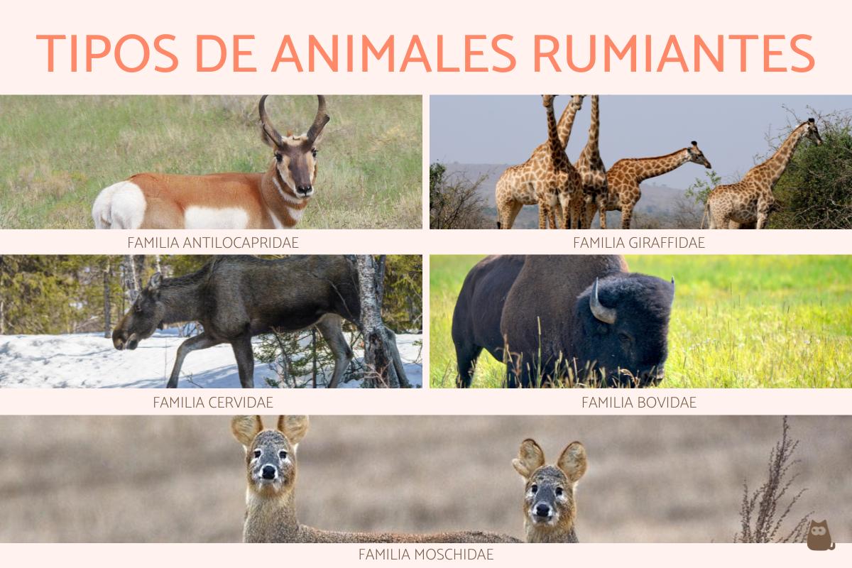 Los distintos tipos de animales rumiantes que existen los podemos dividir en las siguientes familias.