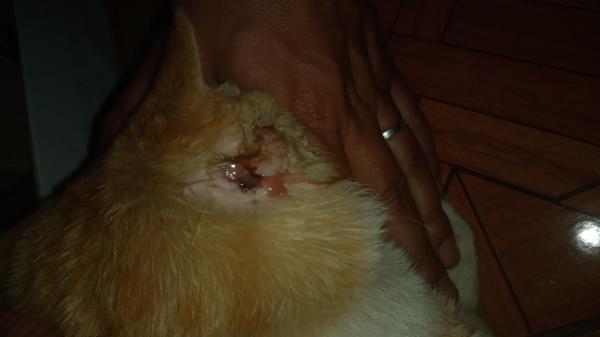 Buenas noches mi gato llegó así no se si le pegaron o peleó con otro gato , lo limpié con gasa y suero fisiológico..... quisiera orientación porque no tengo como llevarlo a una veterinaria como lo puedo curar yo en mi casa , que le puedo dar ? Agradecería que alguien que sepa me ayude u oriente
