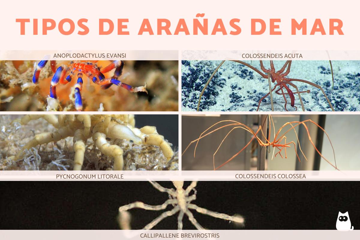 A su vez, en cada suborden se agrupan superfamilias, familias y los respectivos géneros y especies. Veamos algunos ejemplos o tipos de arañas de mar: