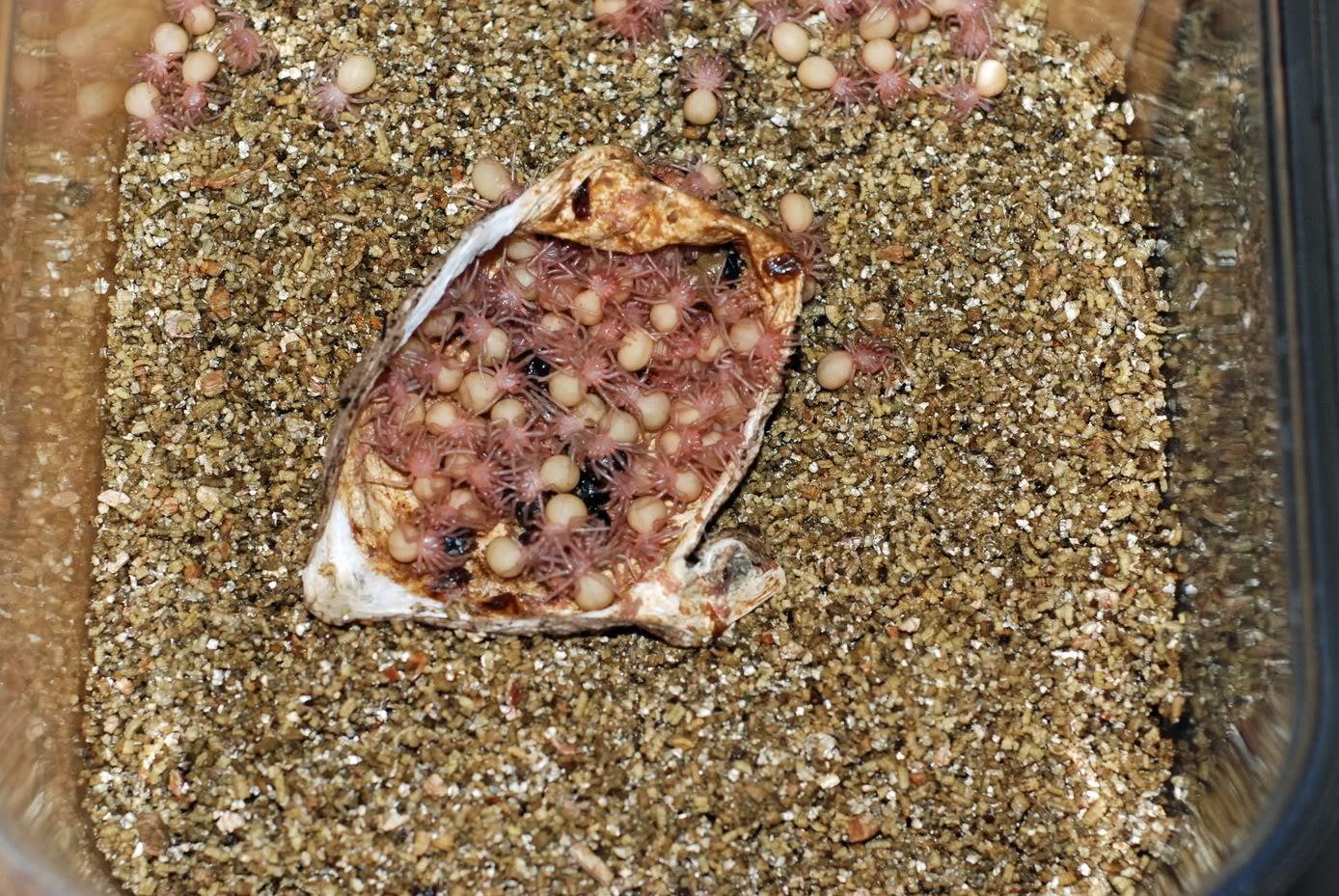 Abasteceremos el terrario con turba de al menos 10 centímetros de grosor para que esta pueda hacer su madriguera, podemos facilitarle la creación de un nido incluyendo una maceta enterrada.